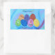 Estos pegatinas presentan mi pintura de siete coloridos huevos de Pascua decorados con diseños de puntillismo en un fondo abstracto. El texto, Feliz Pascua, está escrito en azul medio, y se puede personalizar fácilmente en el formulario de plantilla. Los huevos son de colores rojo, violeta, naranja, verde, azul, rosa y amarillo. El color de fondo es azul claro con toallitas de azul, violeta, amarilla y lavanda. Gracias por comprar CherylsArt en Zazzle.