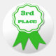 Los pegatinas de amor de los niños y qué mejor manera de premiar algo especial, en la sala de clases, luego regalar a los pegatinas premiados. Este pegatina redondo tiene gráficos de una cinta verde, sobre un fondo blanco, y lectura de texto gráfico verde, 3er LUGAR. Genial para cualquier niño de edad.