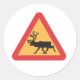 Cuidado con los ciervos que cruzan la carretera. Este diseño es una señal de cruce de ciervos que te avisa. Este diseño de señales de cruce de venados se ve muy bien en estos pegatinas. Perfecto para usted o como regalo