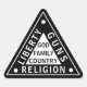 Triangle Pegatina que puedes poner en tu equipo para que la gente conozca tus prioridades. Dios, familia, país. Libertad, Armas, Religión.