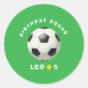 Pegatinas personalizadas de cumpleaños de fútbol para niños. Nombre y edad editables. Diseño de insignia de jugador audaz con gráfico de balón de fútbol. Perfectas como sellos de bolsas de favor, tapas de bolsas de botín, etiquetas de botellas de agua o sellos de sobres de fiesta. Coordina con la invitación, platos, tazas, servilletas y bolsas de favor para un look de fiesta completo. Parte de la colección Soccer Star Birthday Boy en Zazzle.