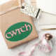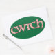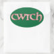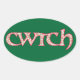 ¡Envíe un 'cwtch' galés a sus seres queridos! Una hoja de pegatinas ovales con la palabra galesa 'cwtch', que significa 'cuddle' o 'abrazo' en un guión celta, rellena con un patrón bonito clematis en un fondo verde profundo que se puede cambiar si se desea.