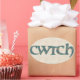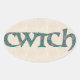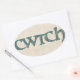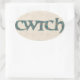 ¡Envíe un 'cwtch' galés a sus seres queridos! Una hoja de pegatinas ovales con la palabra galesa 'cwtch', que significa 'abrazo' o 'abrazo' en un guión celta, rellenada con un patrón paisley en un fondo de efecto lino.