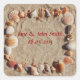 Estas bodas en la playa favorecen a los pegatinas para que se sumen a cualquier boda en la playa. Los pegatinas muestran una imagen de un marco de conchas de mar multicolores contra la arena de marfil. Además, ofrecemos este diseño en otros productos para ayudarle a crear una celebración boda cohesiva.