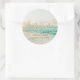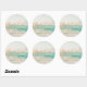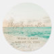 Hermoso diseño de la escena de la playa favorece a los pegatinas impresos con "Feliz para siempre" u otra cita de su elección, nombres y fecha de boda.