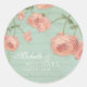 Utilice estos pegatinas de gran tamaño como sellos de bolsos de regalo, decoraciones o tapones de cupcakes de bricolaje en el tamaño de círculo más pequeño de 1/2" los utilice como sellos para sobres para añadir un toque de elegancia a su ducha de novia, boda u otras invitaciones para eventos. Esta paleta de colores es una tendencia muy fuerte para los bodas en 2016 y más allá. El fondo de la menta con un toque de azul acuático desmarca a los rosas de estilo antiguo color melocotón rosa que parecen tan reales que casi huelen a su fragancia celestial. Una profusión de Rosas ingleses antiguos cuelgan sobre un fondo de cerca desgastado y angustiado de color verde menta azul acuático. Hermosas flores pintadas a mano con un estilo holgado y pintoresco, son a la vez intemporales y clásicas, mientras que le dan un toque fresco y moderno a las duchas de novias estilo bohemia BOHO, cenas de ensayo, recepciones de bodas y celebraciones de duchas para bebés. Se dispone de un conjunto completo de productos de fiesta en papel para coincidir con las colecciones de invitaciones. Este conjunto de artículos de fiesta de papel se realizó para coordinar con el boda, el aniversario o las colecciones de invitaciones de cumpleaños con el mismo diseño. Derechos reservados Audrey Jeanne Roberts, todos los derechos reservados.