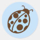 Una mariquita azul y marrón es el punto central de este pegatina.
