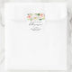 Tensión de despedida, hola pensión! fiesta de retiro favorece a los pegatinas en forma cuadrada con un ramo de flores de acuarela de colores blancos y delicados rosa rubor. Personalice fácilmente las etiquetas de su evento o cambie todos los colores de la redacción, el estilo de texto y el tipo de letra.