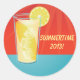 Estos pegatinas disponen de una copa de limonada refrescante con cubos de hielo para representar un fiesta de verano divertido y relajante. Los colores son un naranja rojo profundo, azul brillante y amarillo, que son colores alegres en el verano.