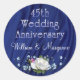 Naturalmente, la bella rosa blanca en plena floración combinada con azules y pequeños rosados en un fondo azul profundo emana vibraciones de amor por este boda pegatina fiesta aniversario. Los nombres se pueden personalizar utilizando la plantilla proporcionada. Fotografía original y diseño de Anura Design Studio.