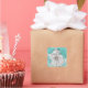 Un moderno pegatina floral con flores abstractas en verde azulado y blanco sobre un fondo gris claro.La tarjeta es fácil de personalizar con sus opciones de texto, fuente, color de fuente y forma de papel.