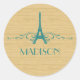 Elegantes y modas Pegatinas floridos franceses con un aspecto falso de madera y un diseño de la Torre Eiffel en verde azulado adornado con cascadas de elegantes remolinos. Este diseño elegante y elegante es fácil de personalizar con el texto personalizado de su elección. Haga clic en "Personalizar" para encontrar más opciones de personalización.