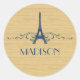 Elegantes y modas Pegatinas floridos franceses con un aspecto falso de madera y un diseño de la Torre Eiffel en azul oscuro adornado con cascadas de elegantes remolinos. Este diseño elegante y elegante es fácil de personalizar con el texto personalizado de su elección. Haga clic en "Personalizar" para encontrar más opciones de personalización.