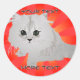 Un adorable gatito blanco esponjoso sobre un fondo rojo enérgico. Arte original © Lydia "PrairieGhost" Jacobs 2010