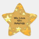 Brillante frontera amarilla llena de estrellas sobre un fondo dorado con texto personalizado adentro para crear un mensaje de los padres a los niños en la lonchera de su escuela, sellos para sobres o pegatinas premiados de profesores por buen trabajo en la escuela.