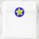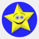 Pegatina de recompensa de profesor divertido hecho en forma redonda, con un brillante fondo azul y gráficos de una gran estrella amarilla sonriente de ojos. Personalizar para agregar el texto que desee. Ideal para cualquier niño de edad.