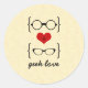 Pegatinas de Gafas Geeky, suaves y extravagantes, con un corazón rojo flanqueado por dos pares de anteojos geky, una pareja masculina y una pareja de chicas. ¡Estos dulces pegatinas le agregarán un toque de nerviosismo a cualquier lugar donde los pegue! Fácil de personalizar, simplemente añada el texto personalizado de su elección. Haga clic en "Personalizar" para encontrar más opciones de personalización.