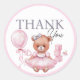 Pegatinas gracias por la ducha de bebé con una adorable acuarela de ilustracion de un oso de peluche vestido con un lindo vestido rosa.