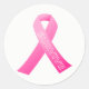 El pegatina mostrado en forma redonda de gran tamaño con una cinta rosa sobrevive a la impresión. Personalizar este artículo o compra tal cual. Conciencia sobre el cáncer de mama