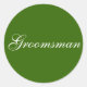 Pegatinas verdes con "Groomsman" en texto blanco