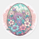 Composición ilustrada de un personaje kawaii sobre un campo de flores de color pastel con nubes en el fondo