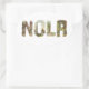 Esta pegatina presenta cuatro escenas de tarjetas postales antiguas de Nueva Orleans dentro de cada letra de NOLA.