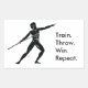 Un conjunto de pegatinas rectangulares con un gráfico de un atleta griego preparándose para lanzar una lanza con las palabras "Tren". Arrojar. Ganar. Repito". Definitivamente la fórmula universal para ganar a cualquier deportista.