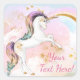 Pegatinas de unicornio con bello unicornio sobre un fondo de arco iris y de nubes giratorias. Puede personalizar fácilmente estos pegatinas de bonito unicornio para su evento simplemente agregando el texto de su elección. También puede cambiar el color de fondo. Este es un diseño impreso sin ningún purpurina real.