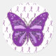 La cinta morada de sensibilización significa Fibromialgia, Enfermedad de Crohns, bullying anti-gay, maltrato animal, fibrosis quística, enfermedad de Huntington, prevención del suicidio, cáncer de páncreas y testículo.