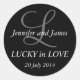 ¡Suerte en el amor! Pegatinas de monograma para Bodas. Personalizar sus nombres, fecha de boda, monograma y colores de este pegatina. Simplemente haga clic en el botón "PERSONALIZAR" y siga las instrucciones. Elke Clarke ©2011