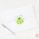 Pegatinas de primer cumpleaños, amables y divertidos, con un monstruo feliz, verde, rayado o alienígena con un "1" azul en un círculo amarillo y caprichoso con un borde de puntito naranja en su vientre. El monstruo es feliz y parece que está aclamando. Diseño luminoso y colorido para los niños, genial como pegatinas decorativos o como sellos para sobres para niños pequeños o chicas invitaciones a fiestas de primer cumpleaños. Hay otros productos de coordinación disponibles.