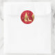 Pegatina mostrada con un ciervo navideño festivo en una impresión artística forestal. Tamaño pequeño mostrado en colores rojo y dorado