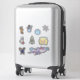 Personalizados de navidad pegatinas Vinyl recortó el estilo Navidades pegatinas temáticos. Palo fácil, gran desgaste y lágrimas. Estilos de vacaciones personalizados, 8 diseños separados en una página. Hombre de nieve, reno, 2 copos de nieve, árbol, bombillas colgantes, ángel, caramelos y una cáscara de copos de nieve.