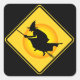Un signo de precaución brillante en los stickers de la zona de brujas de Halloween