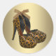 Pegatinas elegantes de zapato de tacón alto negro y dorado. Estas hermosas pegatinas de zapato de tacón alto con estampado de leopardo negro se personalizan fácilmente para su evento simplemente eligiendo el botón "¡Personalízalo!" para comenzar a agregar su texto, estilo de fuente, tamaño y color de fuente, y redacción. Tenga en cuenta que todas las pegatinas, tarjetas y diseños de invitaciones que encontrará en Zazzle son gráficos impresos sin joyas reales, lazos, partes o piezas en relieve, grabadas o añadidas.