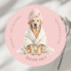 Pegatinas personalizadas de agradecimiento para Spa de peluquería canina presentan una ilustración de un labrador adorable con texto de "Gracias" en la parte frontal y detalles totalmente personalizables, incluyendo el nombre del negocio, tipo de servicio de mascotas y sitio web.