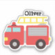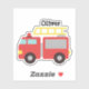Vehículo de emergencia de camión de bomberos rojo divertido con el nombre de su hijo. Puede cambiar el texto, el estilo de fuente y el color. Pegatinas personalizadas para niños en el aula. #bomberos #rescate #camiones