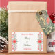 Una pegatina personalizada de fecha de guardado con un grabado de una marca de impresor vintage de un escudo decorado y un diseño floral de margaritas y hojas rizadas en rojo y dorados, restaurado de un manuscrito antiguo.