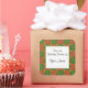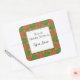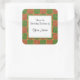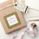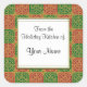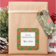 Pegatina de horneado o enlatado personalizado con letras de guión y arte de vacaciones rojas y verdes con un elegante patrón de flor de lis reformado a partir de azulejos antiguos.