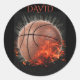 Baloncesto en llamas pegatinas de niños por raspilleras, artesanías y fiestas infantiles. Nombre personalizado en pegatinas.