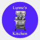 Pegatina de una vieja estufa. Fondo azul. Personaliza con tu nombre. Dice: "La cocina de Lynne". Cambie el nombre a lo que quiera que diga. Coincide con los demás productos de estufa antiguos de esta tienda. Consulte los demás productos que coinciden en esta tienda.