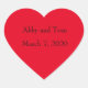 Pegatinas del Corazón Rojo con sus nombres y fecha de boda