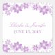 Moderno y elegante Stickers de Boda Floral Simple en lavanda con cascadas de bonitos y flores. Estos elegantes stickers de boda son perfectos para un boda de primavera o verano. Fácil de personalizar, simplemente añada los detalles de su boda. Haga clic en "Personalizar" para encontrar más opciones de personalización.