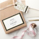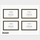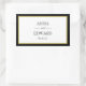Pegatinas rectangulares clásicas en blanco y negro con un toque de oro. Nombres de novia y novio y fecha en texto de bloque y manuscrito dentro de un borde negro y de tono dorado.