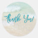 Pegatinas de agradecimiento con fondo de escena de playa. Una forma sencilla de dar las gracias a invitados, clientes o cualquier persona. Las pegatinas redondas vienen en dos tamaños y son perfectas para bodas, fiestas de cumpleaños y todos los días.