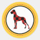 Pegatinas pequeñas redondas de dachshund, aquí en negro rojo dorado.