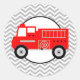 Pegatinas redondas de fiesta de camión de bomberos y Chevron. ¡Úselas como decoraciones para cupcakes, sellos de sobres, etiquetas de favores y más!