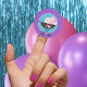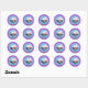 Pegatinas redondas clásicas de cumpleaños de muñeca bebé niña en púrpura, rosa y azul turquesa.