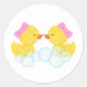 Pegatinas redondas de fiesta de pato de goma acuarela de niña. ¡Una adición perfecta para cualquier cumpleaños de gemelas o baby shower! Son ideales para sellar sobres, como stickers de favor, toppings para cupcakes y más.