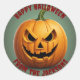 calabaza feliz pegatina redondo de Halloween de la familia calabaza ilustracion y texto